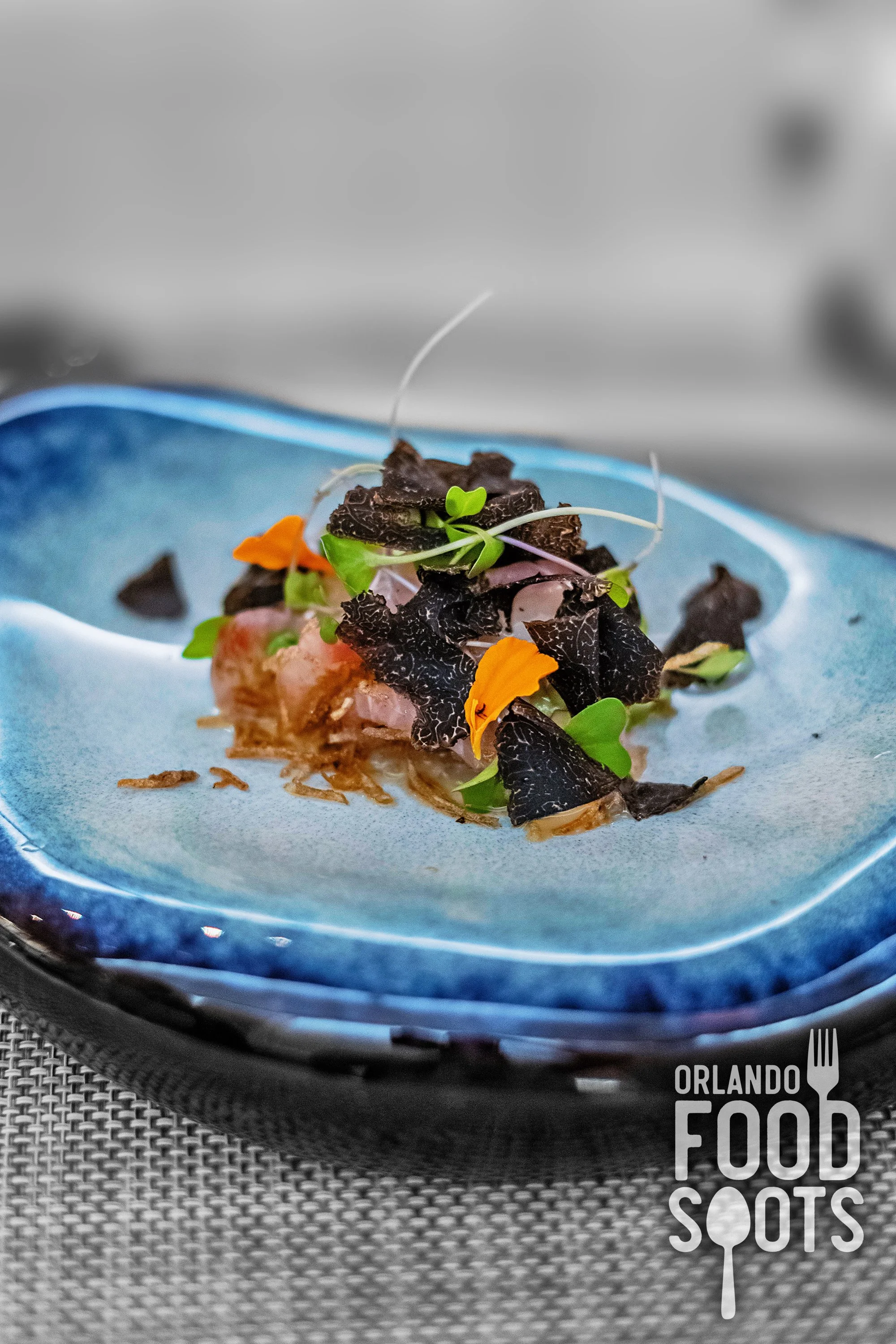 Orlando locals can immerse themselves in an evening of culinary delight at Natsu. The restaurant strives to be an unparalleled artistry of Omakase dining, inviting guests to savor a symphony of flavors meticulously crafted by master chefs. The intimate setting is maxed at a 12-seat capacity, with the Omakase experience lasting about 1.5 hours long. A parking garage is located underneath the building, providing ample parking spaces for guests planning a reserved visit. Our particular experience was facilitates by Chef Stone, featuring a multi-course tasting menu that highlighted the finest seasonal ingredients and expert craftsmanship. Take a sight of notable bites!