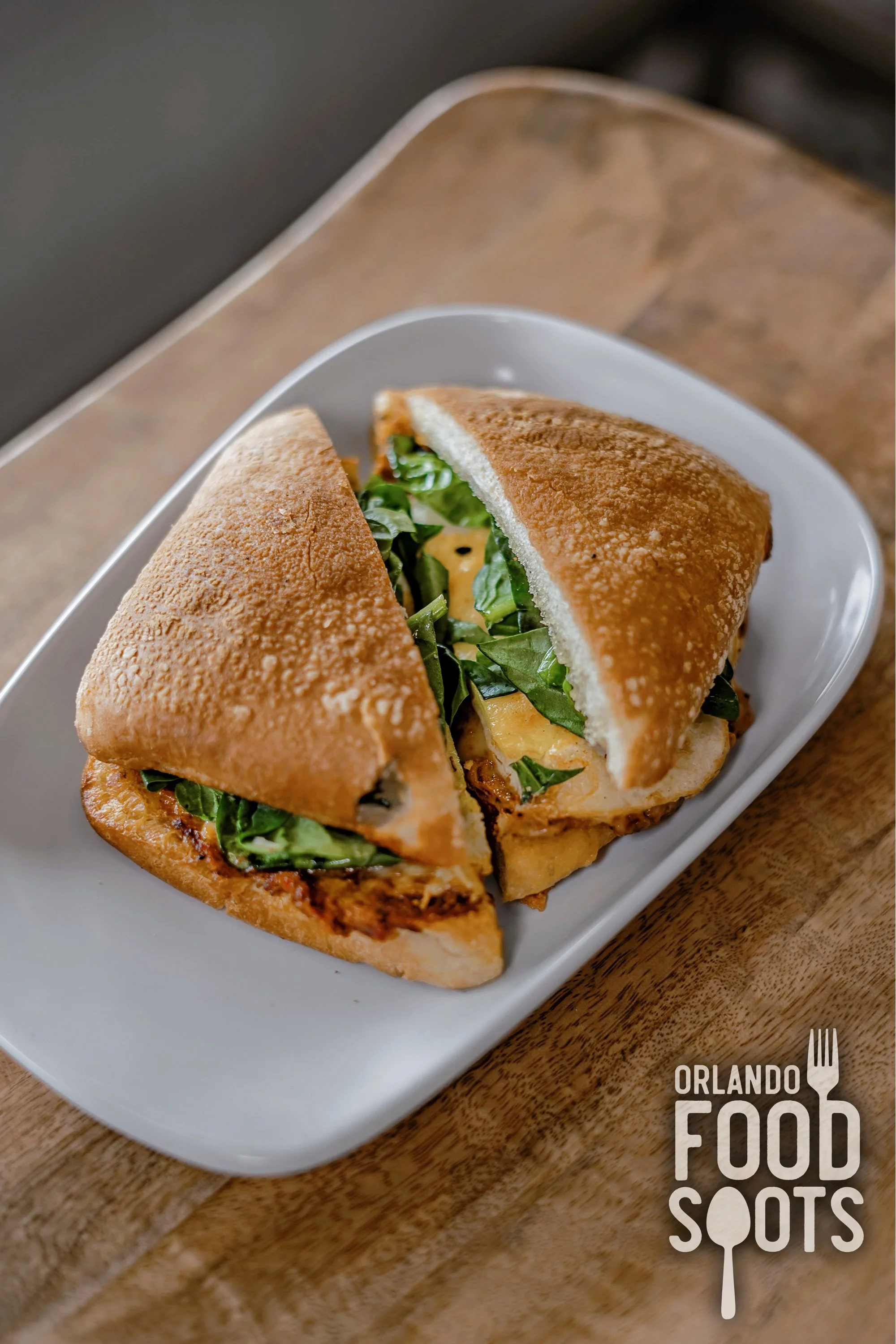 This breakfast bite is composed of a toasted ciabatta roll, filled with gouda that holds a smoky flavor. The pesto adds a bright richness to each bite, while the egg offers a hearty bite. The fresh spinach offers additional texture and lightness.