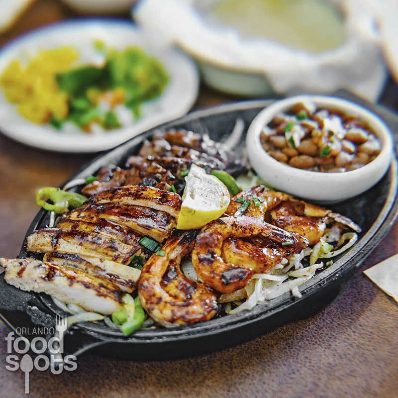 This fiesta-themed restaurant is tucked in Kissimmee’s Loop shopping center, serving scratch-made dishes. The Mexican courtyard vibe is illustrated through murals on the walls, sky painted ceilings filled with clouds, and a large traditional statue serving as a centerpiece of the dining area.