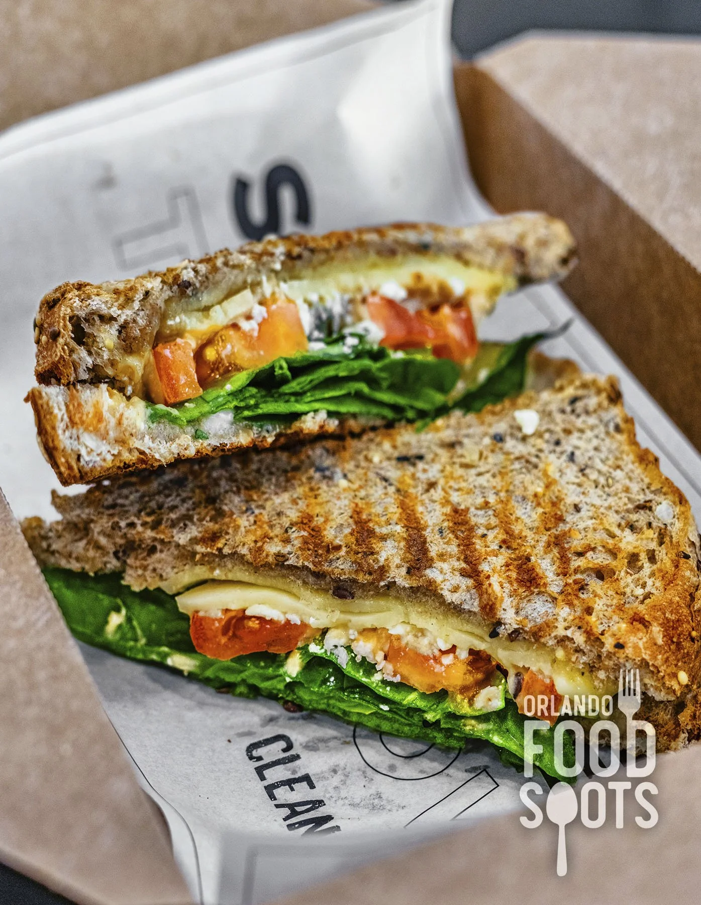 The shop offers several plant-based sandwiches, including the customizable Cali One, that includes toasted sprouted bread stuffed with tomato, spinach, and hummus that holds a nutty flavor. The ingredients are brought together with a melted medley of cheeses that incorporate cheddar, feta, and provolone.