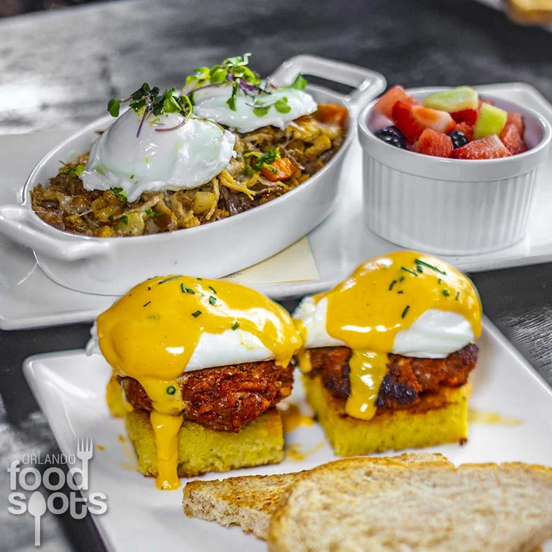 The Chorizo Eggs Benedict had a smooth kick of spice, accompanied by notes of red wine in the pork. The Tender Pork Hash featured poached eggs and various root vegetables, including rutabaga, turnips, and carrots, accompanied by salsa verde and aged white cheddar.