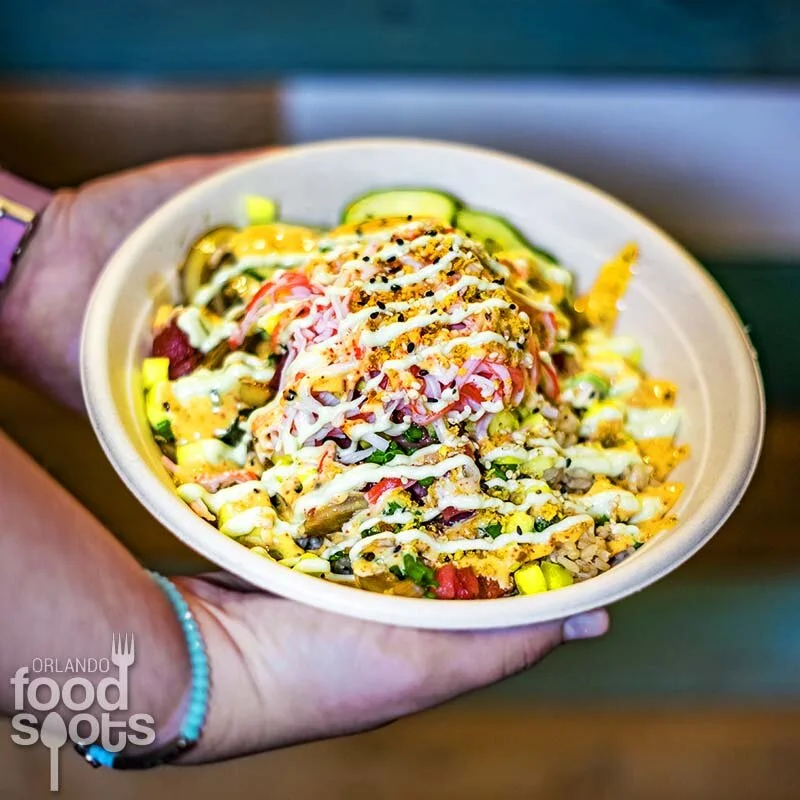 This surf-shack concept has been open for 2.5 years, and franchised a year ago. They recently opened a new, flagship location in Lake Nona, offering a casual spot for poke. The chill vibe is captured in the picnic table seating, surf videos playing on television screens, and reclaimed wood on the walls.