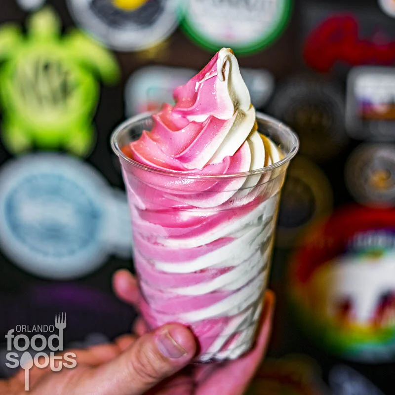This dole whip is a blend of strawberry and vanilla for Breast Cancer month, where a dollar of every cup sold is donated to breast cancer research. This cold dessert is a refreshing ending, delivering a subtle tart taste that satisfies sugar cravings.