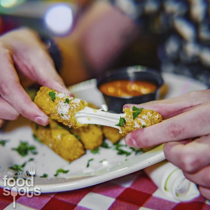 The Mozzarella utilized in this classic appetizer is fresh, signified by the stretchiness of the cheese. Itโs battered and fried, served alongside marinara sauce.