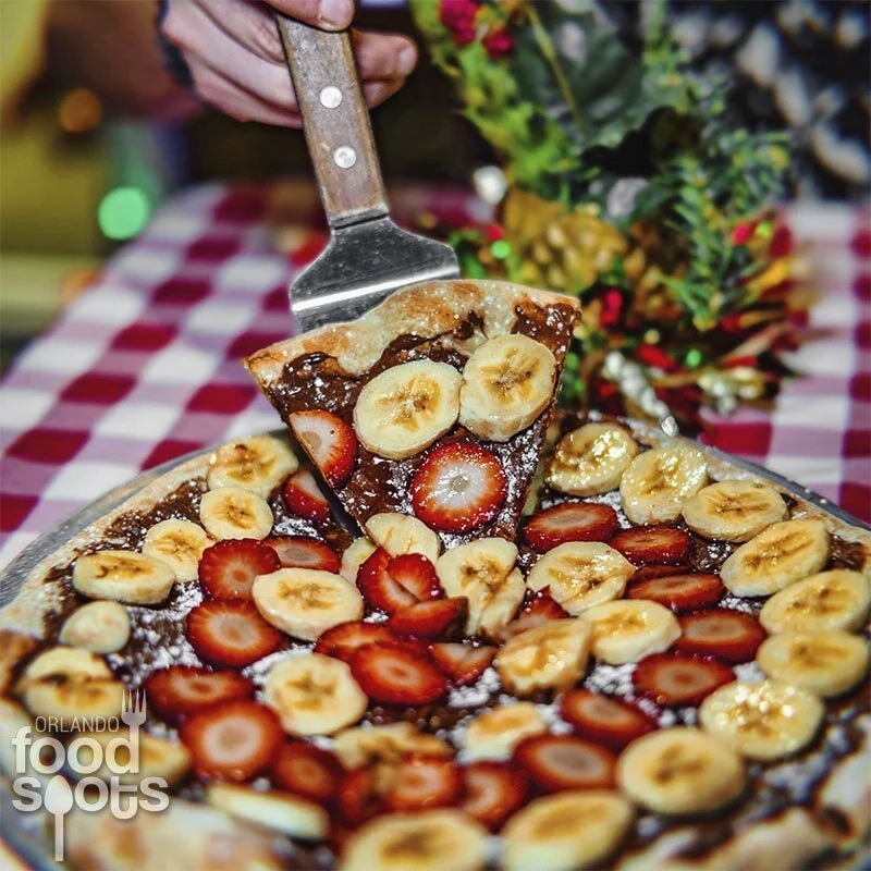 This dessert pizza offers a classic Italian dish in a fun way. The dish features a pizza slathered in Nutella and topped with bananas and fruit for fresh juiciness. Itโs the sweetest way to end a meal!