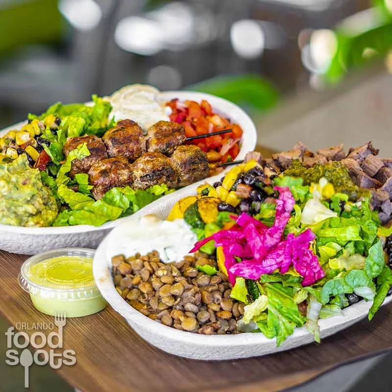 You choose from a unique selection of bases, including lentils and lentil rice. Protein options are also fresh, such as the Lamb Kofta Kabobs or Falafel drizzled in your choice of sauce, from Chimichurri to Tomatillo Salsa Verde.