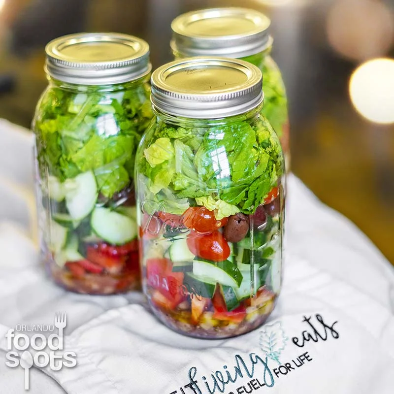 The perfect way to bring a healthy lunch to work is through making a jarred salad. Carly introduced us to fresh ingredients provided by Sprouts Farmers Market and the technique of salad-layering to prevent the dressing from getting to the lettuce in a to-go jar.