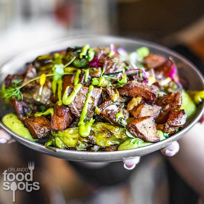 This dish features fried potatoes topped with a vegetable medley of sautéed peppers and onions. I enjoyed how the salsa verde added a subtle burst of flavor that didn’t overpower the braised lamb.