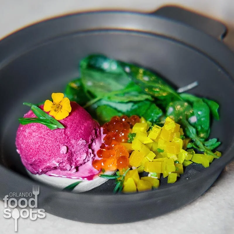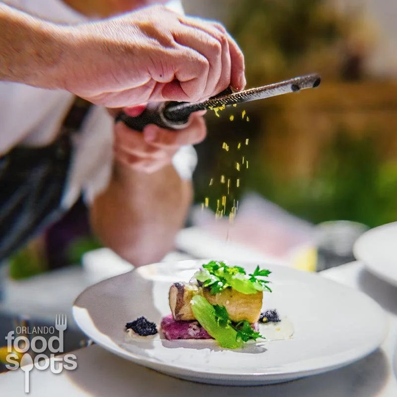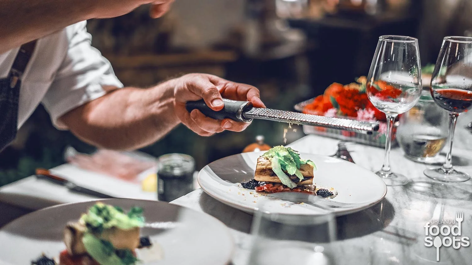 The Foreigner is a multi-course, omakase that allows an intimate group of strangers to break bread together. This close-knit dining experience often takes place at The Heavy in Winter Park, with the backdrop of rich greenery and chic decor. The dim lighting and bar seating sets a cozy ambiance that harbors a relaxing vibe.