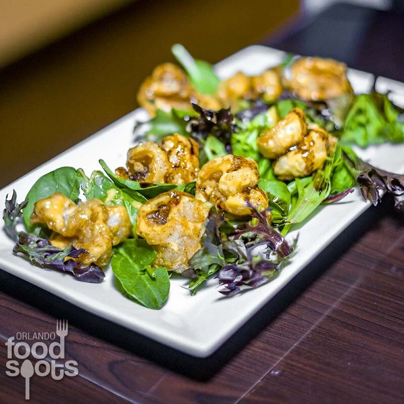 This dish features fried jumbo shrimp atop a bed of greens. The drizzle of house sauce delivered a sweet-spicy taste, in tandem with the tartness of the balsamic glaze.
