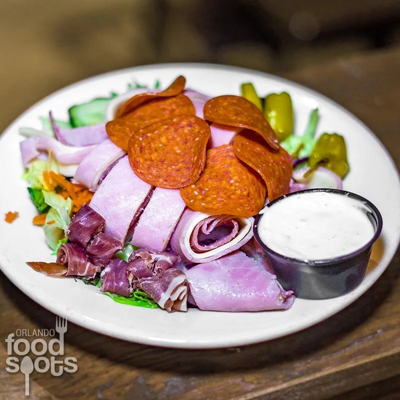 This salad dish was loaded with a variety of meat, including ham, Genoa salami, pepperoni, and prosciutto. The pepperoncini peppers bring a spicy aroma, balanced by the sharp flavor of the provolone.