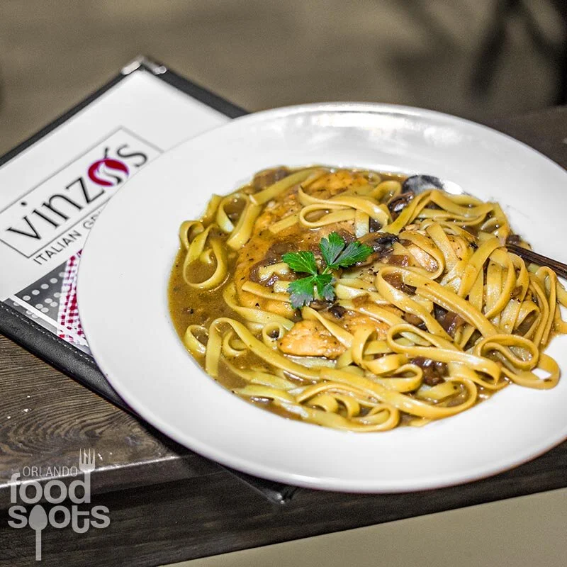 “As servers, we want to create a bond with our customers,” clarifies Kellan, Manager of Vinzo’s Italian Grill tucked in Casselberry, “We’re heavy on take out, but we encourage people to dine in.” This family-owned restaurant has been open for over 20 years, previously known as Italian Village. They’ve re-branded after moving to a bigger space about 7 years ago. Their numerous pizza specials and coupons are the main drivers of their delivery orders. Though the location is difficult to find because of the angled highway and overpass, guests are encouraged to dine in for a friendly, safe environment.